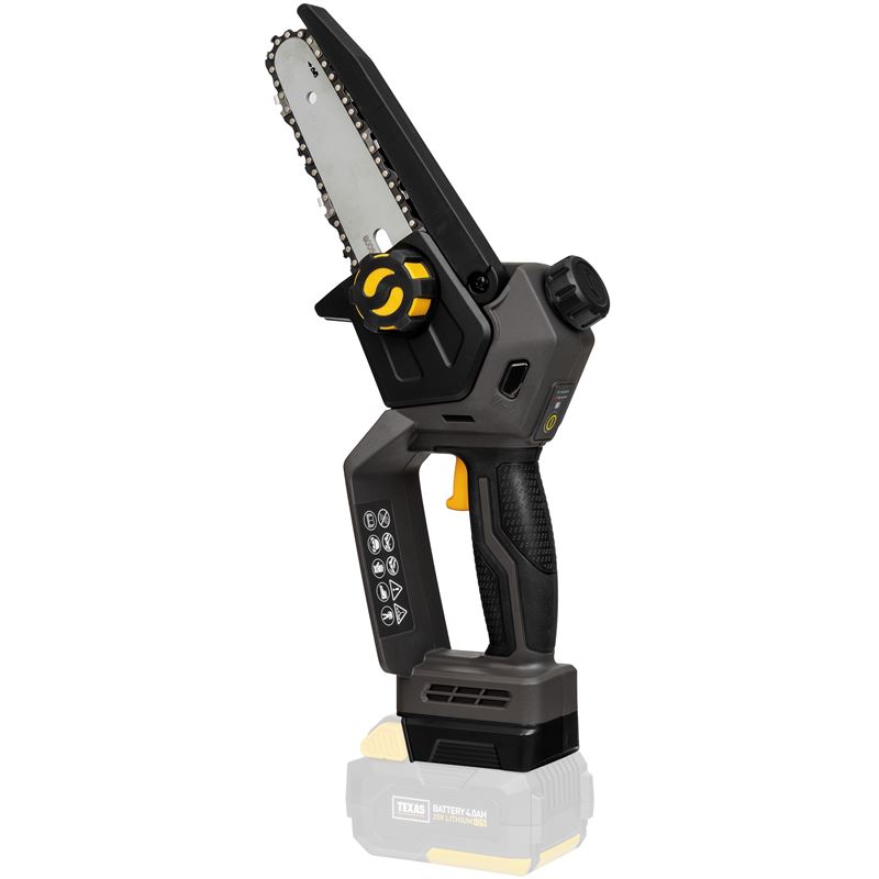 Akumulátorová reťazová píla TEXAS CHX2000 je jednoručná píla na prerezávanie hrubších konárov, koreňov stromov alebo výrub menších stromov. Má veľkú ochranu ruky (pod tlačidlom štart), ktorá chráni ruku. Na rozdiel od väčšiny modelov na trhu má tento model automatické mazanie reťaze (40 ml nádoba) a 2 rýchlosti píly: nízka rýchlosť: 8,5 m/s a vysoká rýchlosť: 11 m/s.Lišta má 5 palcov (12,5 cm) a odstraňuje kusy dreva do podobného priemeru. Nastavenie/napnutie reťaze píly sa vykonáva pomocou skrutkovača. Pred spustením je potrebné do nádrže naplniť reťazový olej, ktorý sa dávkuje automaticky počas používania.Výrobok so svojou nízkou hmotnosťou je jednoduchý na použitie a môže byť výbornou alternatívou k menšej reťazovej píle, ak je primárne určená na prerezávanie stromov . Súčasťou balenia je ochranné/úložné puzdro na čepeľ.Akumulátorová reťazová píla TEXAS CHX2000 je založená na novo vyvinutej 20V platforme, ktorá zahŕňa širokú škálu akumulátorových záhradných strojov.Séria 20 V batérií ponúka množstvo výhod: jednoduchá obsluha, minimálna údržba, menej vibrácií, veľmi nízka hmotnosť a žiadne emisie CO2.POZOR! Batérie a nabíjačka nie sú súčasťou balenia!Musia sa zakúpiť samostatne. Pozrite si príslušenstvo.Keďže reťazová píla má vysoký výkon a spotrebúva veľa energie, odporúča sa pre tento typ produktu použiť 4,0 Ah batériu.Plné nabitie trvá 60/120 minút v závislosti od typu batérie (2,0Ah/4,0Ah). Reťazová píla CHX2000 v teste narezala 57 kusov dreva s priemerom cca 95 mm s plne nabitým akumulátorom 4,0Ah (nízka rýchlosť).Charakteristika a technické údaje: Výkon: 400 W Typ motora: Elektrická batéria Napätie: 20 voltov Rýchlosť reťaze: 8,5 alebo 11 m/s Dĺžka lišty: 12,5 cm Mazanie reťaze: Automaticky Objem nádržky na olej: 0,04 litra Doba nabíjania: 1/2 hodiny Hlučnosť: 100 dB(A) Hmotnosť: 1,2 kg TEXAS je 100% dánska rodinná firma, ktorá vyrába záhradnú techniku od roku 1960. Všetko to začalo so záhradnými kultivátormi, no dnes sa sortiment rozšíril na všetky typy motorových záhradných strojov (elektrický, batériový a benzínový pohon). Hrdé tradície sa začali v továrni v Dánskom Odense, kde dodnes sídli. TEXAS vlastní 2 továrne, ktoré vyrábajú väčšinu našich záhradných strojov. To dáva plnú kontrolu nad vývojom, kvalitou a kontrolou, ako aj zodpovednú a modernú výrobu.