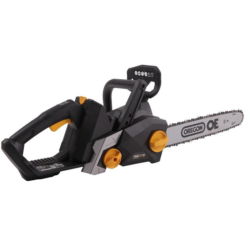 Výkonná 40V reťazová píla s veľkou 35 cm lištou. Vysoká rýchlosť reťaze 16 m/s poskytuje rýchle rezanie. Píla má navyše rovnaké bezpečnostné zariadenia ako väčšie benzínové píly.Batéria a nabíjačka nie sú súčasťou balenia. Batériu je potrebné zakúpiť samostatne. Odporúča sa zakúpiť 4,0 Ah batériu s väčšou kapacitou, pretože reťazová píla pracuje s vysokým výkonom a spotrebuje viac energie. Môžete si vybrať medzi štandardnou nabíjačkou (120 min) alebo rýchlonabíjačkou (50 min).Charakteristika a technické údaje: Výkon: 1200 W Typ motora: Akumulátorový Napätie: 40V Štartér: Elektrický Rýchlosť reťaze: 16 m/s2 Lišta: Oregon Dĺžka lišty: 35 cm Mazanie reťaze: Automaticky Nastavenie reťaze: Bez náradia Pracovný čas: 20-40 min Typ batérie: Lítiová batéria Kapacita batérie: 2,5 Ah Hmotnosť: 4 kg TEXAS je 100% dánska rodinná firma, ktorá vyrába záhradnú techniku od roku 1960. Všetko to začalo so záhradnými kultivátormi, no dnes sa sortiment rozšíril na všetky typy motorových záhradných strojov (elektrický, batériový a benzínový pohon). Hrdé tradície sa začali v továrni v Dánskom Odense, kde dodnes sídli. TEXAS vlastní 2 továrne, ktoré vyrábajú väčšinu našich záhradných strojov. To dáva plnú kontrolu nad vývojom, kvalitou a kontrolou, ako aj zodpovednú a modernú výrobu.