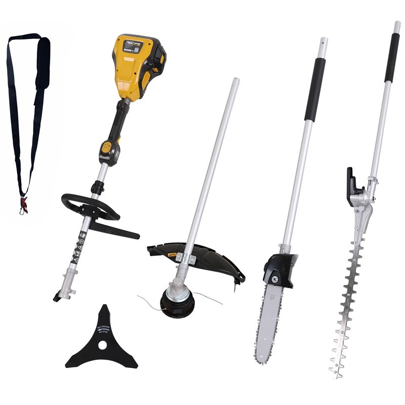 Multistroj 4 v 1 založený na novo vyvinutej 58V platforme, ktorý zahŕňa kovovú čepeľ, strunová žacia hlava reťazovú pílu na konáre a sklopné nožnice na živý plot. Deliteľný hriadeľ uľahčuje prepínanie medzi príslušenstvom. Batériu a nabíjačku je potrebné zakúpiť samostatne! Séria 58V batérií ponúka množstvo výhod ako napríklad jednoduchá obsluha, minimálna údržba, menej vibrácií, nízka hmotnosť a žiadne emisie CO2.Motor je bezuhlíkový 1300W s rovnakým výkonom ako benzínový krovinorez. Úplné nabitie trvá 60/120 minút v závislosti od typu batérie (2,0 Ah / 4,0 Ah). Vyžínacia hlava má 2 šnúry a vysunie sa, keď sa cievka pri otáčaní pritlačí k zemi. Kovová čepeľ je 3-zubová. Čepeľ nožníc na živý plot sa dá jednoducho nastaviť v rôznych uhloch, takže si napr. môže strihať hornú časť živého plota horizontálne.Charakteristika a technické údaje: Struna 40 cm 3-zubová čepeľ: 25 cm Reťazová píla na vetvy: 25 cm Oregon Lištové nožnice na živý plot: 55 cm rezná hrana a 24 mm šírka rezu Typ motora: kartáčový Hmotnosť stroja je 4,4-5,6 kg v závislosti od namontovaného príslušenstva Súčasťou balenia je jednoduchý popruh Batéria s nabíjačkou nie sú súčasťou balenia (potrebné dokúpiť)TEXAS je 100% dánska rodinná firma, ktorá vyrába záhradnú techniku od roku 1960. Všetko to začalo so záhradnými kultivátormi, no dnes sa sortiment rozšíril na všetky typy motorových záhradných strojov (elektrický, batériový a benzínový pohon). Hrdé tradície sa začali v továrni v Dánskom Odense, kde dodnes sídli. TEXAS vlastní 2 továrne, ktoré vyrábajú väčšinu našich záhradných strojov. To dáva plnú kontrolu nad vývojom, kvalitou a kontrolou, ako aj zodpovednú a modernú výrobu.