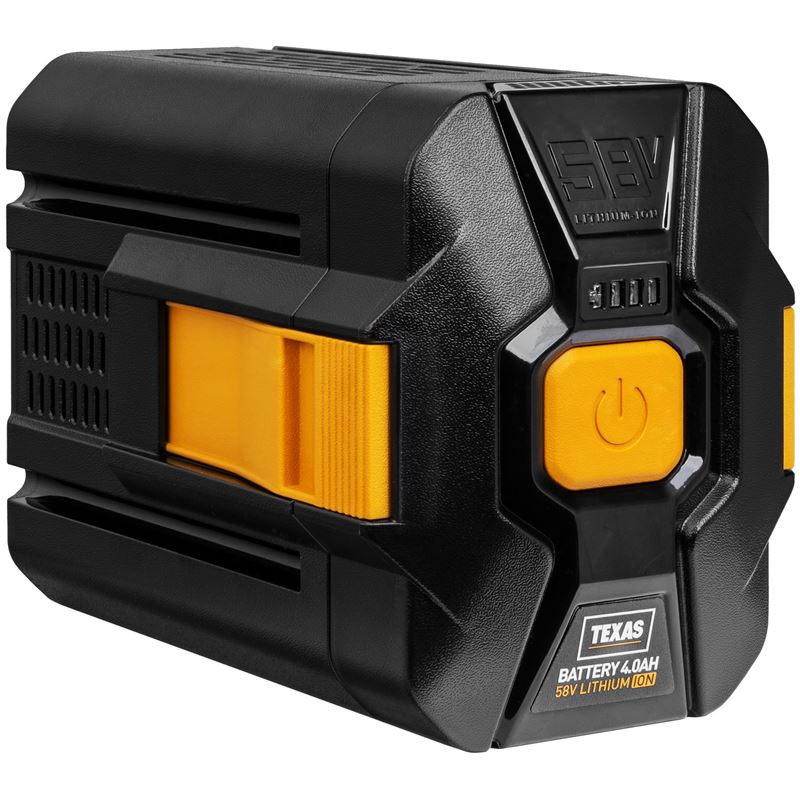 Batéria pre sériu Texas 58 V.Odporúča sa pre fúkače lístia, reťazové píly a kosačky na trávu, ktoré vyžadujú mimoriadne vysokú kapacitu batérie. Môže sa však použiť aj pre iné produkty zo série Texas 58 V.Charakteristika a technické údaje: Čistá hmotnosť: 1,7 kg Šírka balenia: 16 cm Dĺžka balenia: 12 cm Výška balenia: 20 cm Typ batérie: Lítiová batéria Doba nabíjania: 2 hodiny Kapacita batérie: 4,0 Ah Napätie: 58 voltov TEXAS je 100% dánska rodinná firma, ktorá vyrába záhradnú techniku od roku 1960. Všetko to začalo so záhradnými kultivátormi, no dnes sa sortiment rozšíril na všetky typy motorových záhradných strojov (elektrický, batériový a benzínový pohon). Hrdé tradície sa začali v továrni v Dánskom Odense, kde dodnes sídli. TEXAS vlastní 2 továrne, ktoré vyrábajú väčšinu našich záhradných strojov. To dáva plnú kontrolu nad vývojom, kvalitou a kontrolou, ako aj zodpovednú a modernú výrobu.